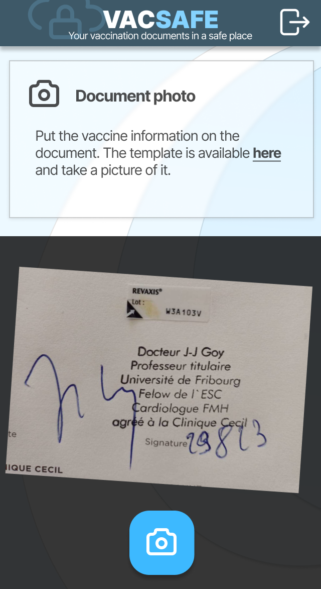 Data extraction from photographed documents is the most practical solution to associate structured data with a vaccination (the other being manual entry). These structured data allow the application to offer the patient more advanced features such as tracking the vaccination schedule or analyzing necessary vaccinations for travel to a given country.