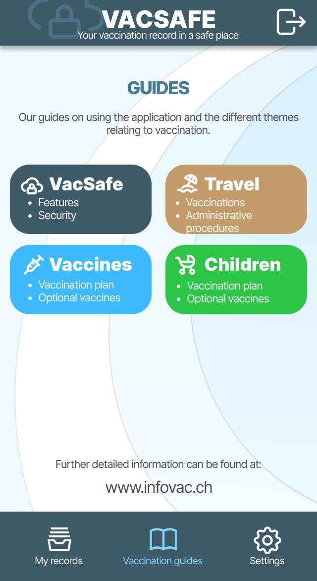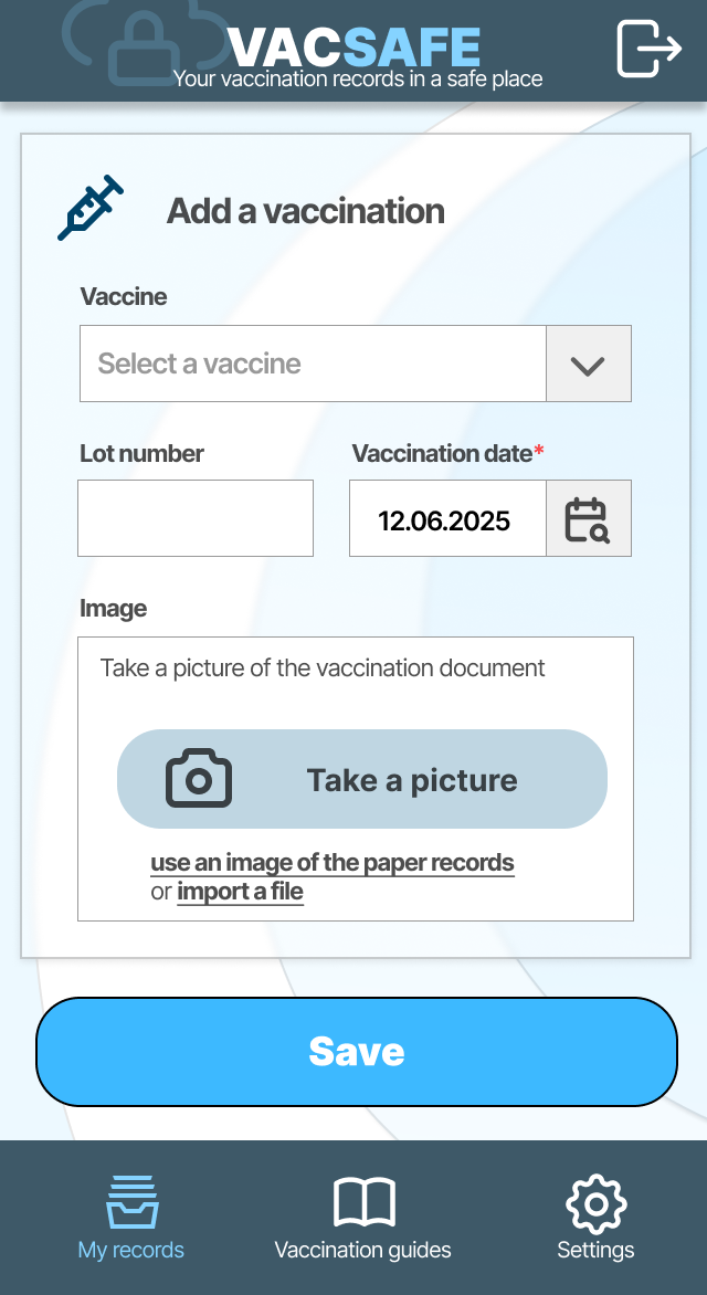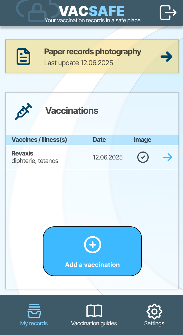 The VACSAFE vaccination records is not intended to lock the patient into a system. Therefore, it offers the patient the possibility, at any time, to export their vaccination record in an open format. They can also print a document that can be used in the same way as the paper vaccination record.