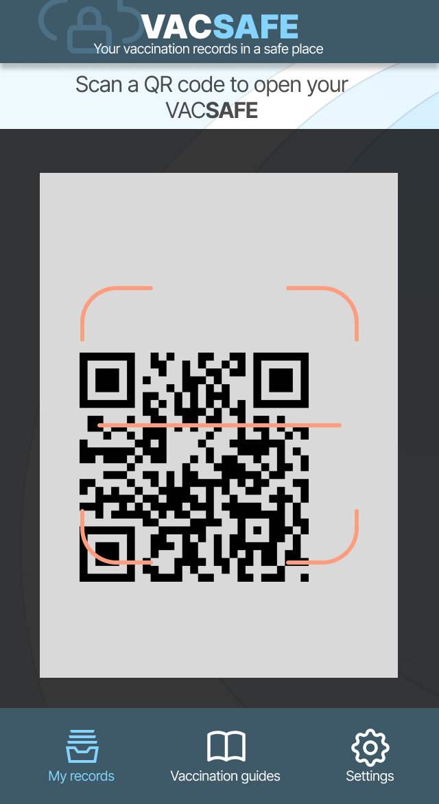 Moreover, the patient does not need to create an account in the application, thus remaining anonymous. Access is exclusively given through a key expressed as a QR code. This is provided when creating the VACSAFE record.
